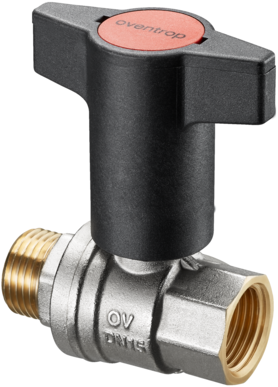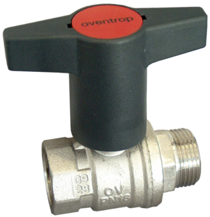 Kugelhahn mit Kunststoff Knebelgriff Optibal mit Außengewinde und Innengewinde PN 16, Messing, vernickelt, gerade, 2-teilig, kompletter Durchlass, Handgriff Bedienung
