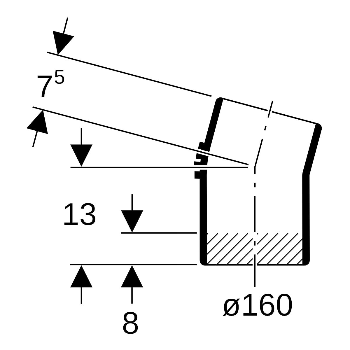 Lieferumfang & passendes Zubehör: Standard-Bogen 15° d=75mm, ohne Dichtungsmaterial. Zubehör bitte separat erwerben.