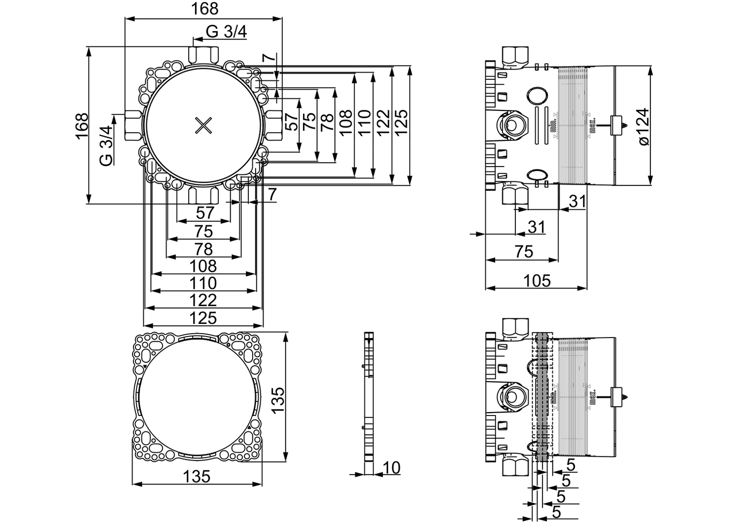HA UP-Rohbauset Bade- und Brausearmatur HANSABLUEBOX - G3/4 / DN20 ist auf Lager und wird versandt, sobald es wieder verfügbar ist