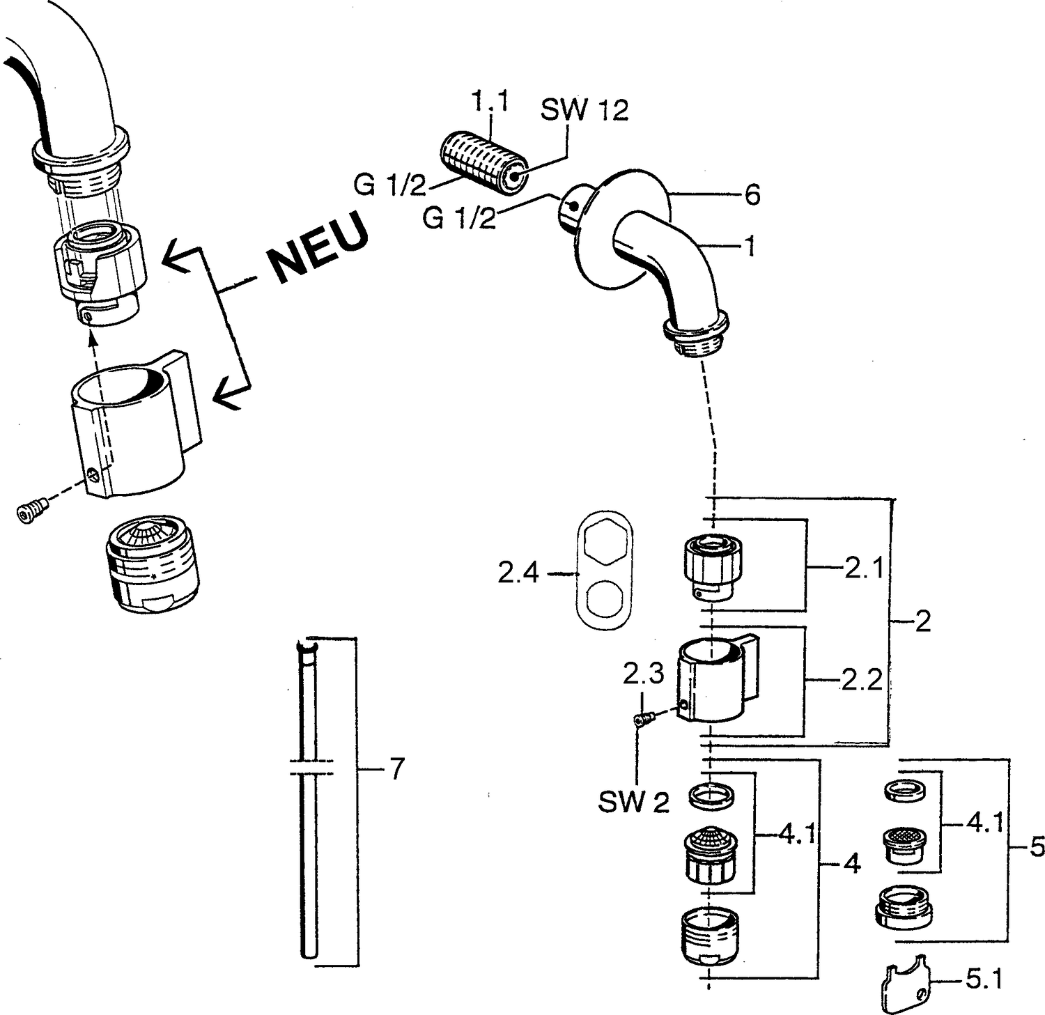 - Komplette Armatur mit Zuleitung für Kalt- oder Mischwasser.
