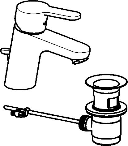 Lieferumfang: Waschtischbatterie, Zugstangenablaufgarnitur, Montageanleitung.